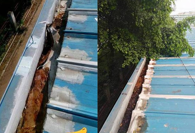 清理天溝,保證屋面排水通暢,如銹蝕損壞嚴(yán)重,可整體更換。
