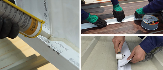 用西牛皮自融合型特種防護(hù)膜配套節(jié)點(diǎn)密封膠及節(jié)點(diǎn)密封膠帶進(jìn)行節(jié)點(diǎn)密封。
