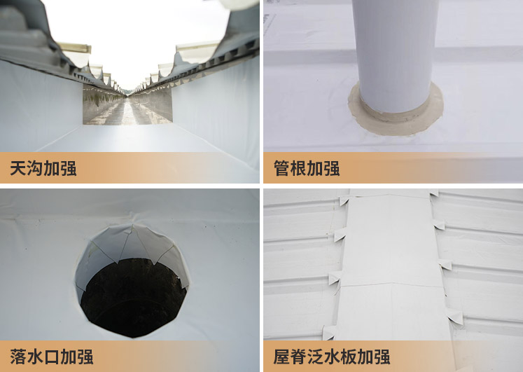 必要時,先對屋脊泛水板、瓦搭接縫、檐口、天溝、風(fēng)機(jī)底座、采光帶等細(xì)部節(jié)點(diǎn)加強(qiáng)處理。
