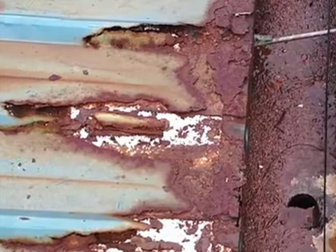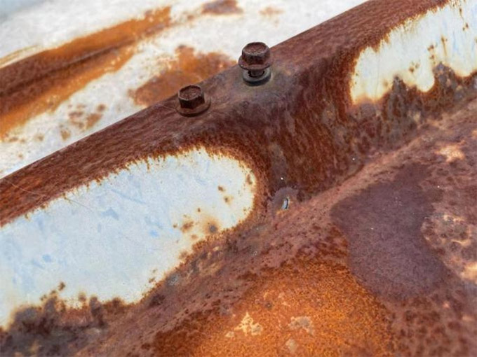 - 已經(jīng)形成整面銹蝕,局部穿孔:面板強(qiáng)度大大降低